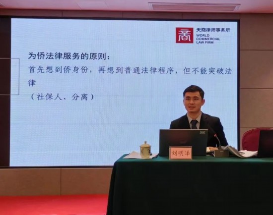 广东省法学会律师学研究会理事刘明泽作《涉外法治大背景下做好新时代为侨法律服务新举措》专题培训,通过分析依法维护侨益真实案例,对涉侨法律法规进行了生动的解读。