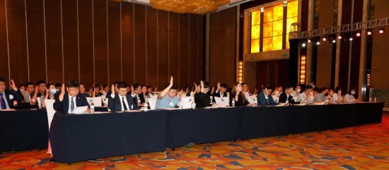 当选会长、执行会长、常务副会长、副会长、秘书长一同来到主席台前,与会员代表见面。