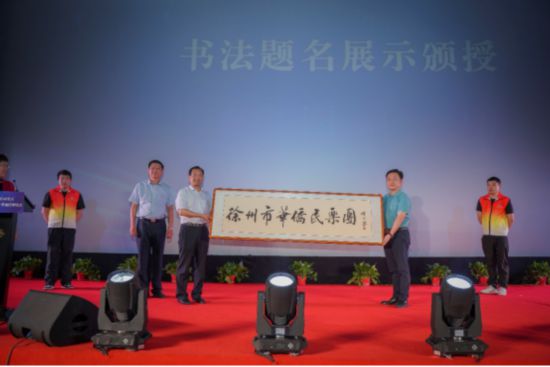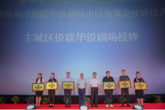 刘广昕、刘爱进为徐州市龟山景区管理中心、徐州圣博华康商业发展有限公司、云龙区中影东方影城绿地世纪城店、泉山区大光明西苑影城、鼓楼区大光明汇邻湾影城、新城区中影东方影城绿地缤纷城店等6家单位颁授“徐州侨联华侨剧场”牌匾。