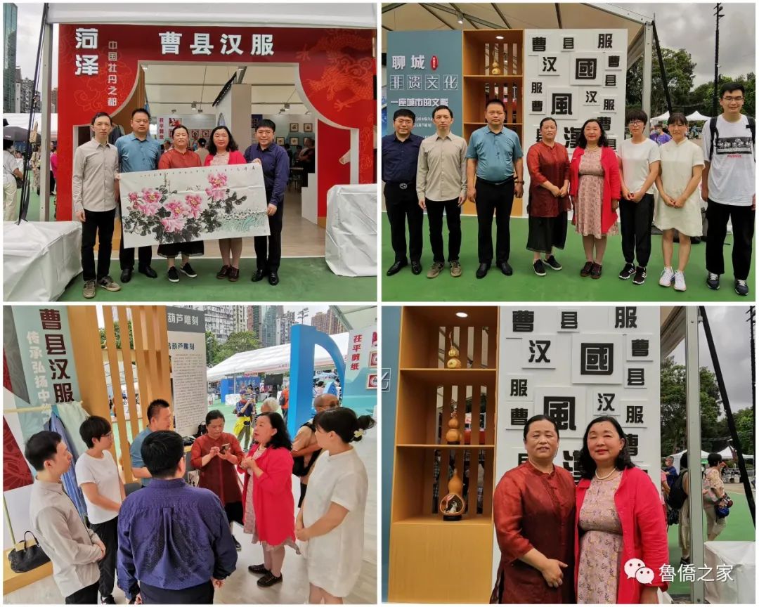 在菏泽曹县汉服展区,山东侨界一行与远道而来的菏泽领导、商户在现场热切交流,了解当地汉服产业发展态势、设计、生产和销售情况。菏泽曹县约有汉服及上下游相关企业2000多家,原创汉服加工企业超过600家,是中国汉服三分之一的生产地,产品远销国内外,带动当地居民致富,带动曹县社会经济高质量发展。