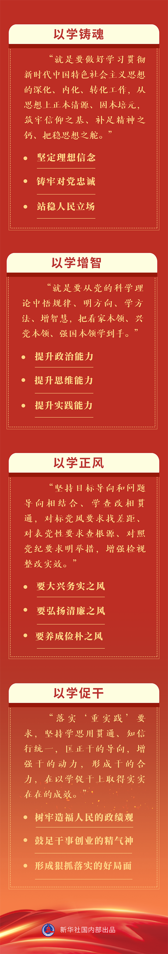 以学铸魂推动精神洗礼,以学增智强化能力提升,以学正风促进作风转变,以学促干推动事业发展。