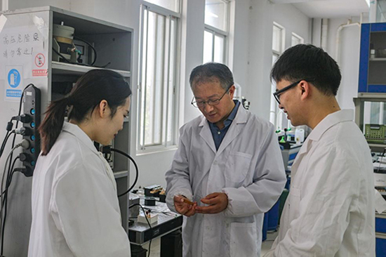 张斗的研究不仅与国际接轨,同时也聚焦地方实际。他基于湖南省丰富的铋、锑、铌等矿产资源,多年来致力于无铅压电陶瓷材料与器件应用研究,研制环保无污染的高性能钛酸铋钠基、铌酸钾钠基和铌酸铋钙基无铅压电陶瓷材料及器件,将湖南省资源优势转化为技术和产品优势,开发高附加值产品,推动无铅压电陶瓷的产业化。在国际上首次报道合成出具有菱方/四方准同型相界结构的钛酸铋钠-钛酸钡二维籽晶,制备可在-50~300℃宽温度范围内使用的钛酸铋钠基多层陶瓷电容器、发高压电系数铌酸钾钠基无铅压电陶瓷,并制备无铅微孔雾化片。该产品与湖南省美程陶瓷科技有限公司共同成功申报了工信部2021年产业链创新协同专项,进行呼吸机用人体友好型无铅压电陶瓷的中试生产。张斗还研制居里温度高达1000℃的铌酸铋钙基无铅压电陶瓷,获得2021年湖南创新型省份建设专项资助,开发高温无铅压电加速度传感器。他在无铅压电陶瓷领域的研究真正做到了推进产学研深度融合转化,服务地方经济发展。
