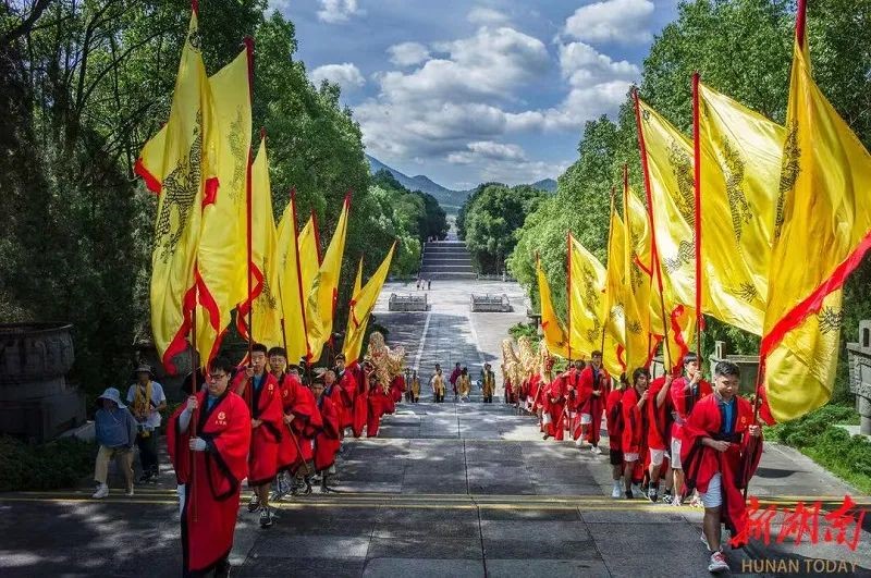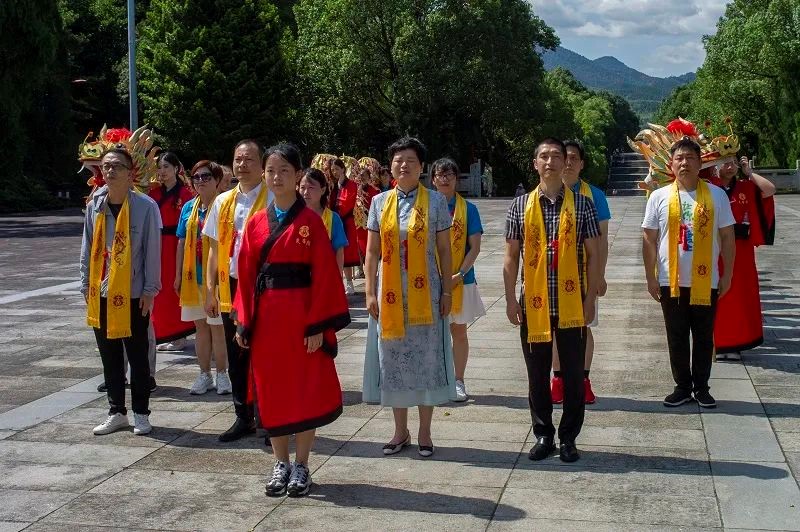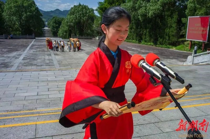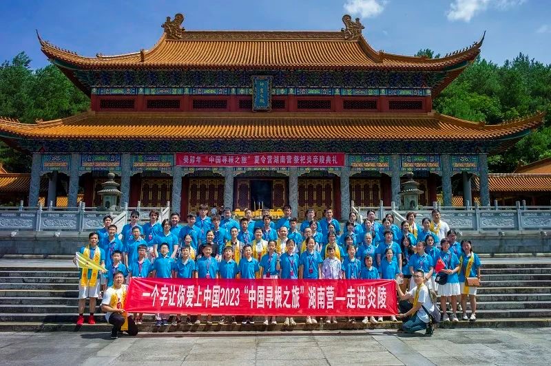 在“神州第一陵”——炎帝陵,50多位青少年在阙门广场上排好了队列。这些一个字让你爱上中国·2023“中国寻根之旅”夏令营湖南营的营员们,身穿红色的汉服,束着黑色的腰带,专程来炎陵问祖寻根,祭拜炎帝。
