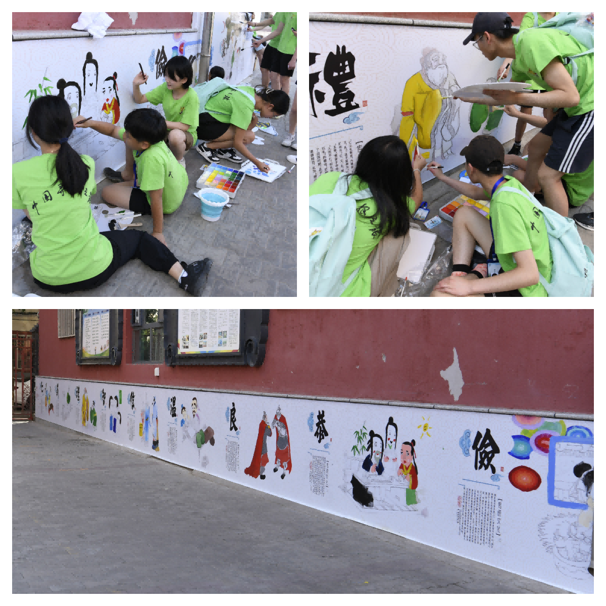 营员们在励志楼前共同涂鸦,绘制了以传统礼仪、成语故事、十二生肖等为主题的传统文化主题墙,大家边涂鸦边交流讨论图画的主题内容,感受了文化、传递了友情。这几面传统文化主题涂鸦墙成为远隔千山万水却有着相同的血脉根源的小朋友们友谊的见证。