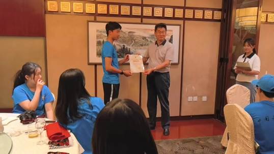 轩江波副主席为营员颁发结营证书,并与营员热情交流、合影留念,并嘱托他们,在“寻根之旅”中传递根和梦,把真实美丽、多姿多彩的新疆和兵团故事分享给海内外的亲朋好友,做传播中华文化和讲好中国兵团故事的小使者,努力成为中外文化交流互鉴的桥梁和纽带,争当住在国人民同中国人民友好往来的民间使者。兵团侨联为营员们每人准备了一份精美的中华文化书签作为纪念品,让孩子们在读书时每每看到书签都能回想起这次难忘的兵团之行。