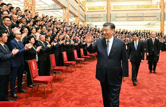 5月8日,党和国家领导人习近平、王沪宁、蔡奇等在北京人民大会堂会见第十届世界华侨华人社团联谊大会代表。