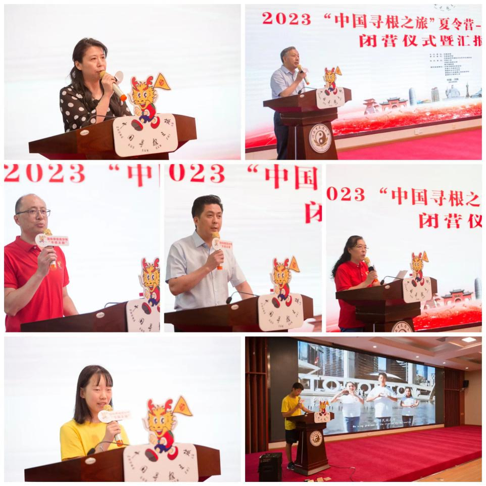 全英河南同乡联谊会暨英国河南商会会长王秋蕙、德国领队老师王卫海老师、营员代表刘添天发言,表示这是一次终身难忘的“寻根之旅”,感谢侨联组织提供的这个难得地近距离感受中国、感受河南的机会。同学们在这期间收获了友谊、得到了学习和成长,感受了源远流长的中华文化,将不负重托,当好中华文化的传播者、中国故事的讲述者,架起国际间友好往来的桥梁。
