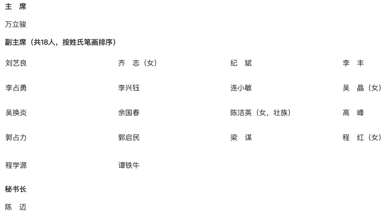 (受权发布)中国侨联第十一届委员会主席、副主席、秘书长名单