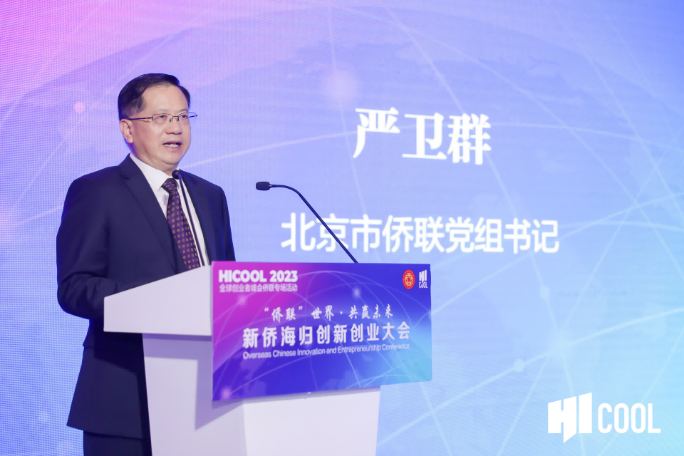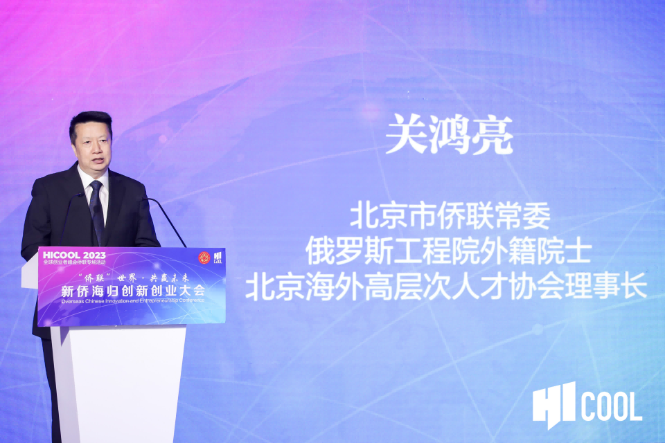北京市侨联党组书记严卫群,北京海外高层次人才协会理事长关鸿亮为大会致辞。严卫群介绍了近年来北京市侨联围绕国家总体战略布局和新时代首都高质量发展开展的工作,以及此次深度参与HICOOL全球创业者峰会和创业大赛的情况,希望新侨海归聚焦新时代首都发展,共叙桑梓情谊、共享HICOOL机遇、共谋合作新篇,为中国式现代化及助力构建人类命运共同体贡献侨界力量。