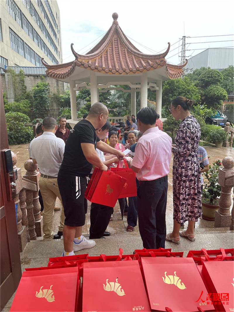 中秋佳节花好月圆,爱国侨领奉献真情。9月16日,亚洲地区中国和平统一促进会联合总会荣誉会长、泰国中国和平统一促进会荣誉会长、知名青年侨商领袖莫杰锋携夫人王菲女士,把亲自采购的一批广东百年老字号"广州酒家"的优质月饼和数百元人民币,一并双手送到家乡广东省东莞市大洲村每一位60岁以上老人的手中,以此表达夫妻二人作为爱国爱乡侨胞的一片赤诚之心。