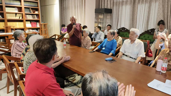 活动正逢我国“教师节”,天津医科大学口腔医院学生志愿者团队的学生们,借此活动为老师们送上鲜花祝福并与老归侨们合影留念。