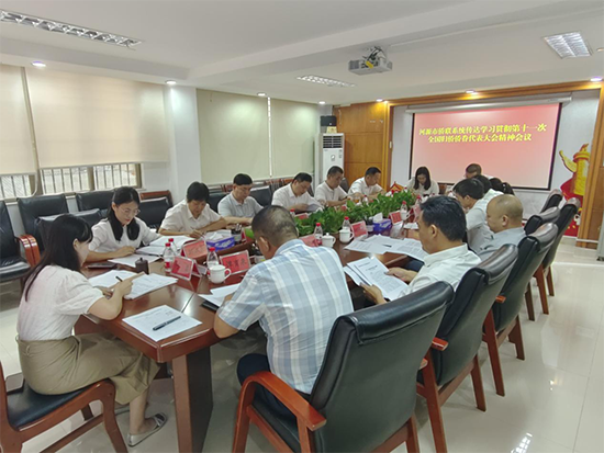 广州市侨联党组成员、副主席童慧(左四)传达大会精神