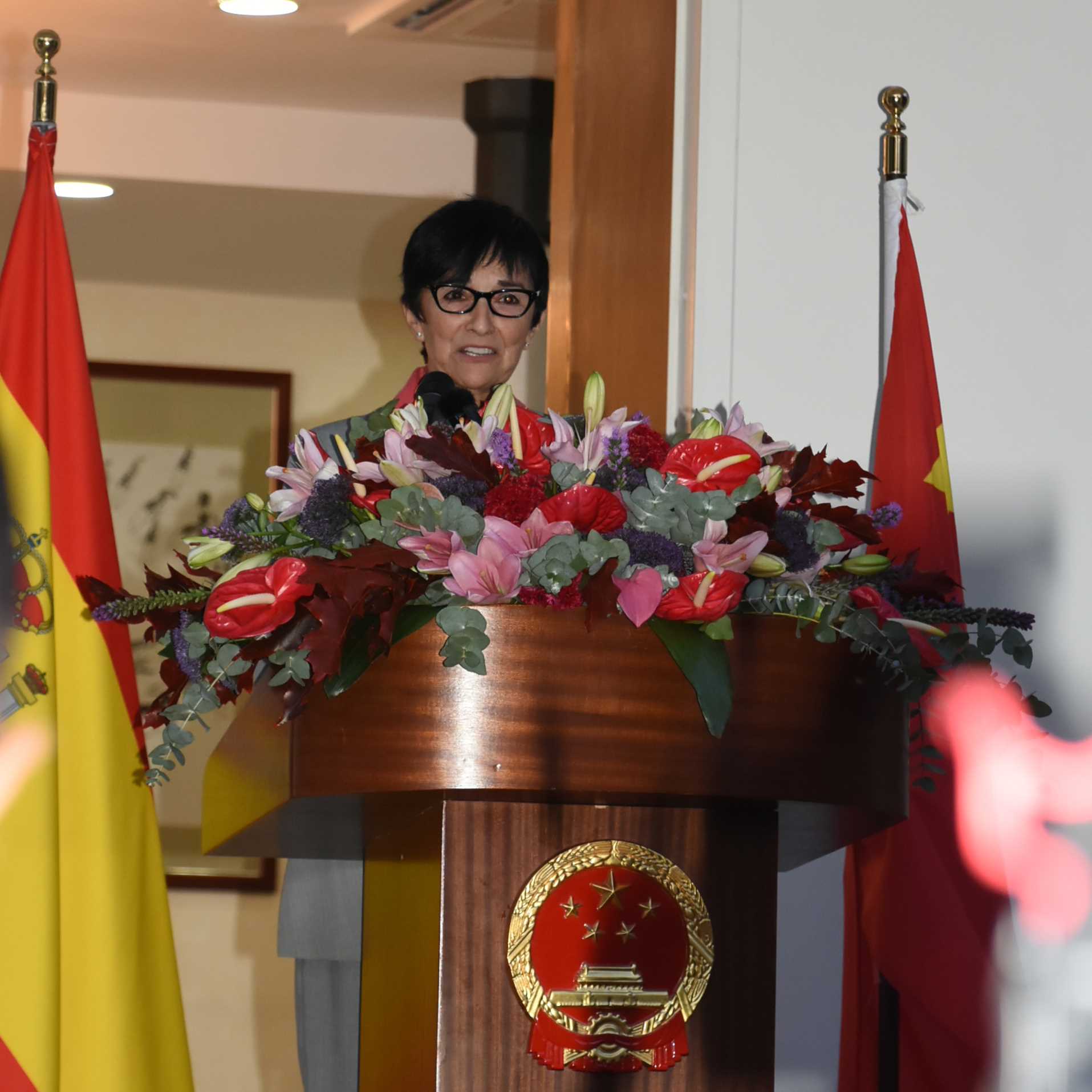 中央驻加区副代表Josefa Beltran女士在致辞中表示,西班牙和中国之间的关系见证了两国如何克服文化和政治差异,如何为两国建立牢固、互利的联盟,相互尊重和理解,通过建设性对话解决分歧的意愿是这种关系的基本支柱,这表明具有不同背景的国家之间的合作不仅是可能的,而且对于应对我们这个时代和未来的全球挑战来说也丰富且必不可少。目前,中西关系稳定发展,各项事业取得长足的进展,给双方带来了良好成效。最后她说:“我真诚地希望我们两国之间的关系更加稳固日复一日,继续深化合作,共同为美好的未来而努力。”