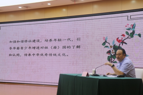 中国侨联文化交流部部长刘奇同志围绕学习贯彻十一代会精神做好文化交流工作进行授课。