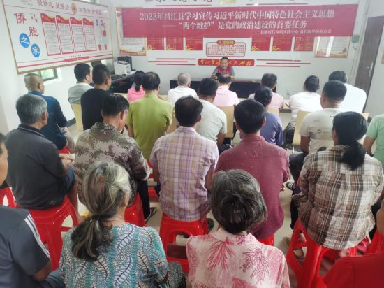 县新时代文明实践中心宣讲团老师谢志勇围绕“两个维护”是马克思政党的理论逻辑、是中国共产党百年的历史逻辑、是实现中华民族伟大复兴的初中逻辑,在新征程上必须坚决做到“两个维护”等主题进行宣讲,带领大家一起学习《“两个维护”是政治建设的首要任务》。现场听众全神贯注、认真倾听,纷纷表示通过现场聆听,增强了坚定不移听党话、矢志不渝跟党走的信心和决心。