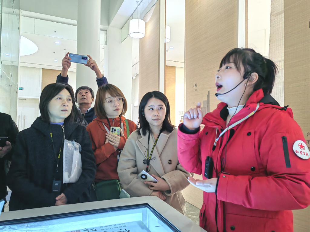 在宣城市泾县中国宣纸文化园,采访团一行了解了世界非物质文化遗产中国宣纸的传承创新,领略千年古法造纸精湛技艺。先后参观中国宣纸博物馆、红星三丈三巨宣生产车间、宣纸技艺展示区、红星宣纸展示厅等展区,详细了解非遗宣纸厚重的历史文化底蕴。工作人员介绍,一张宣纸的诞生,从最初50道流程发展到目前的180道工序,复杂程度难以想象,在其他地区难以复制。