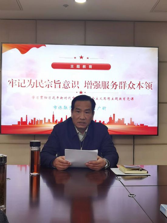 徐州市侨联党组书记刘广昕以《牢记为民宗旨意识 增强服务群众本领》为题,围绕为民服务宗旨的重要性、怎么做、关键点三个方面阐释了党的根基在人民、血脉在人民、力量在人民,只有坚持从群众中来、到群众中去,把增强服务侨界群众本领贯穿工作全过程。他要求全体侨联党员干部深入学习贯彻习近平新时代中国特色社会主义思想,牢记“全心全意为人民服务”宗旨,扎实推进中国侨联十一代会精神落地见效,团结凝聚广大归侨侨眷和海外侨胞,在全面建设社会主义现代化国家、全面推进中华民族伟大复兴、推动构建人类命运共同体的进程中,奋力谱写新的光荣篇章!