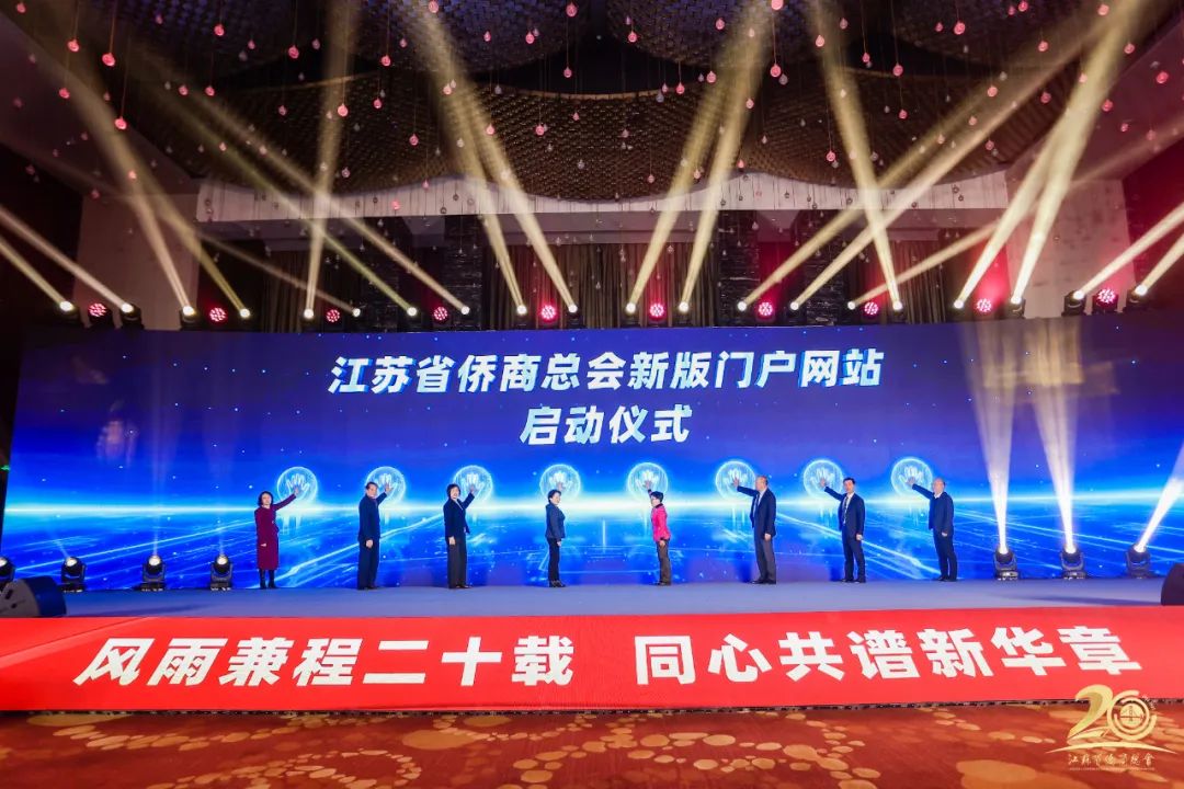 黄政和潘龙泉分别向江苏省侨商总会成立二十周年致贺词和祝词,会上还同步启动了江苏省侨商总会新版门户网站。