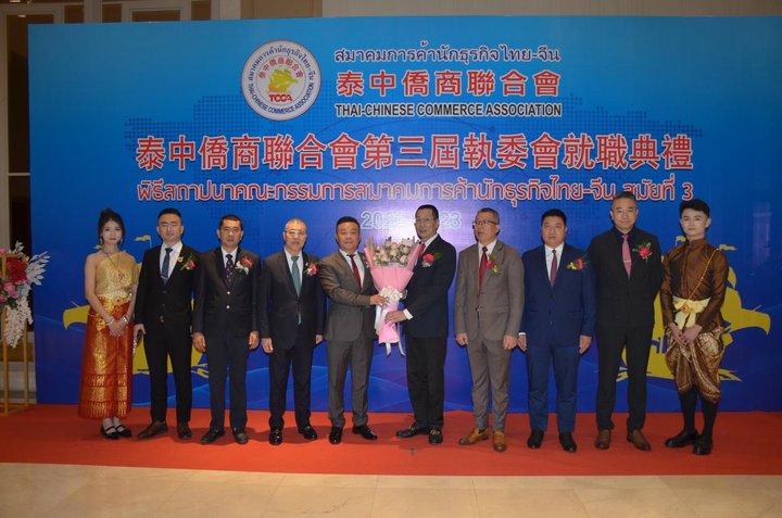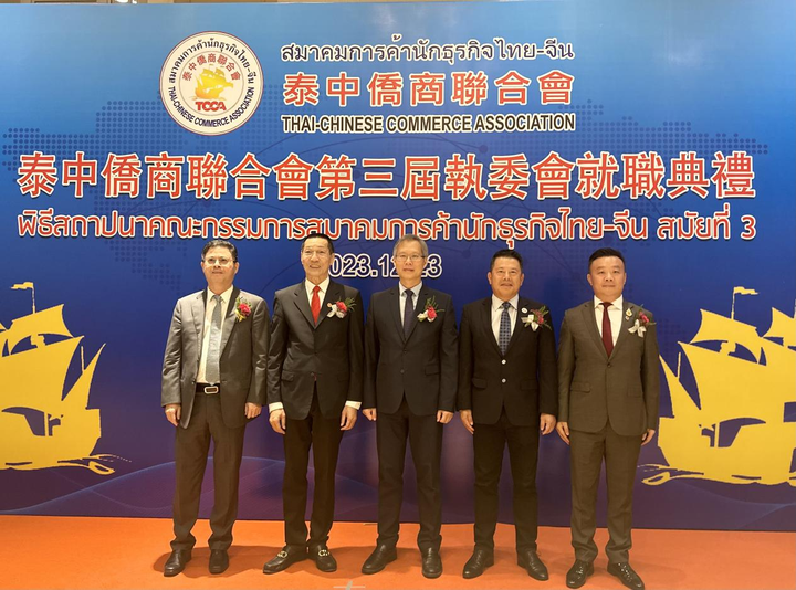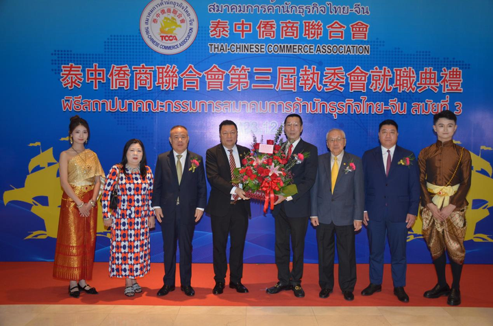泰中侨商联合会第三届执委会就职盛典于2023年12月23日晚6时在泰国中华总商会光华堂隆重举行。邝锦荣博士蝉联第三届主席,泰国国务院第一副总理兼商业部长普坦·威乍耶猜阁下、泰王国阿伊瓦特查克潘亲王、中华人民共和国驻泰国大使馆刘敬师侨务参赞、泰国中华总商会林楚钦主席登台见证。泰国皇家、政府、侨界、商界领袖精英、社会名流、泰中侨商联合会和东部经济走廊(EEC)分会、清迈分会、青年委员会的成员莅临出席盛典,冠盖云集,圆满成功。