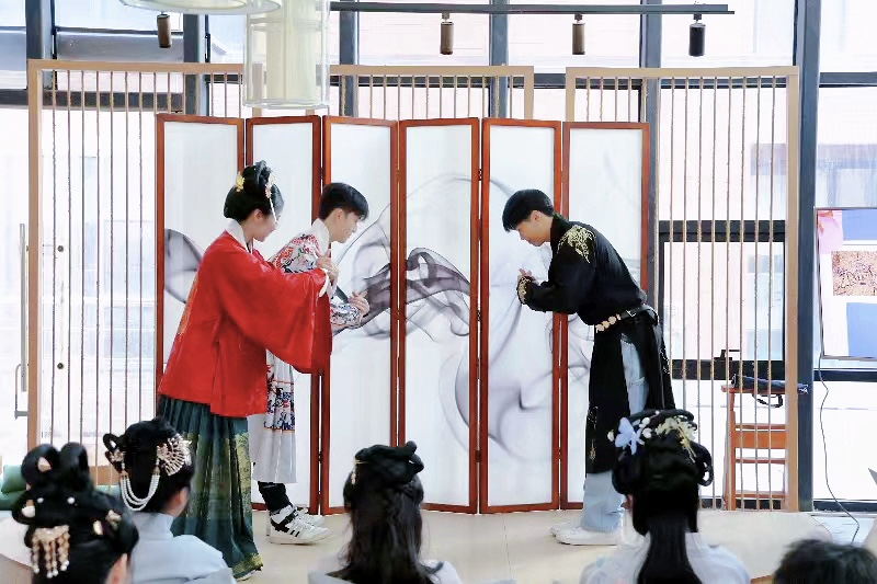 闭营式上,营员们现场表演了汉服礼仪,展示了国画、书法、剪纸、贝雕等学习成果。在华侨美食风情文化节上,营员们通过品尝地方特色美食,观看美食制作全过程,了解平潭特色美食的制作技巧,更加深入地了解和欣赏平潭美食文化;通过观看传统舞蹈《只此青绿》和川剧变脸等节目,近距离感受中国传统戏曲文化的魅力。