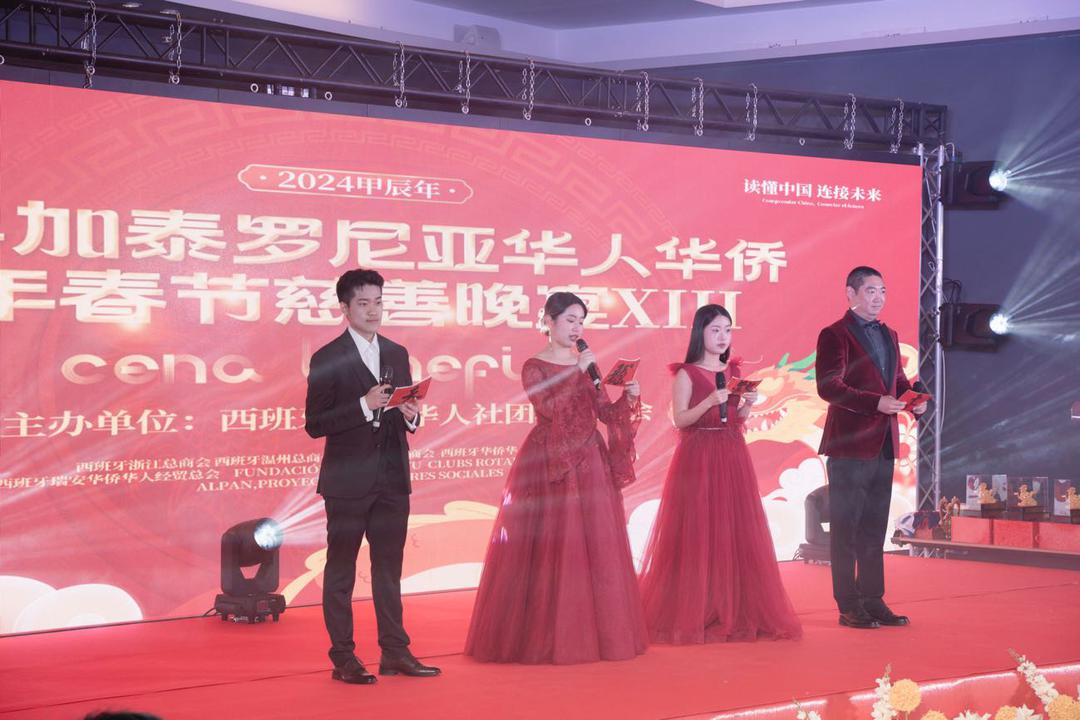 胡代总领事表示,社团联谊总会团结广大加泰罗尼亚华侨华人举办的慈善晚宴系列活动,不仅营造了华侨华人与西班牙友好共庆新春的和谐氛围,更通过慈善义举展现了广大华侨华人积极融入当地,促进中西友好交流的责任与担当。通过今天的慈善晚宴,我们既能深切体会到“慈心为人、善举济世”的中华民族传统美德,又能看到当地中国人团结互助、勤劳拼搏的精神风貌,这是中国倡导平等有序的世界多极化和普惠包容的经济全球化的人文基础,也是习近平主席倡导的构建人类命运共同体理念的生动体现。