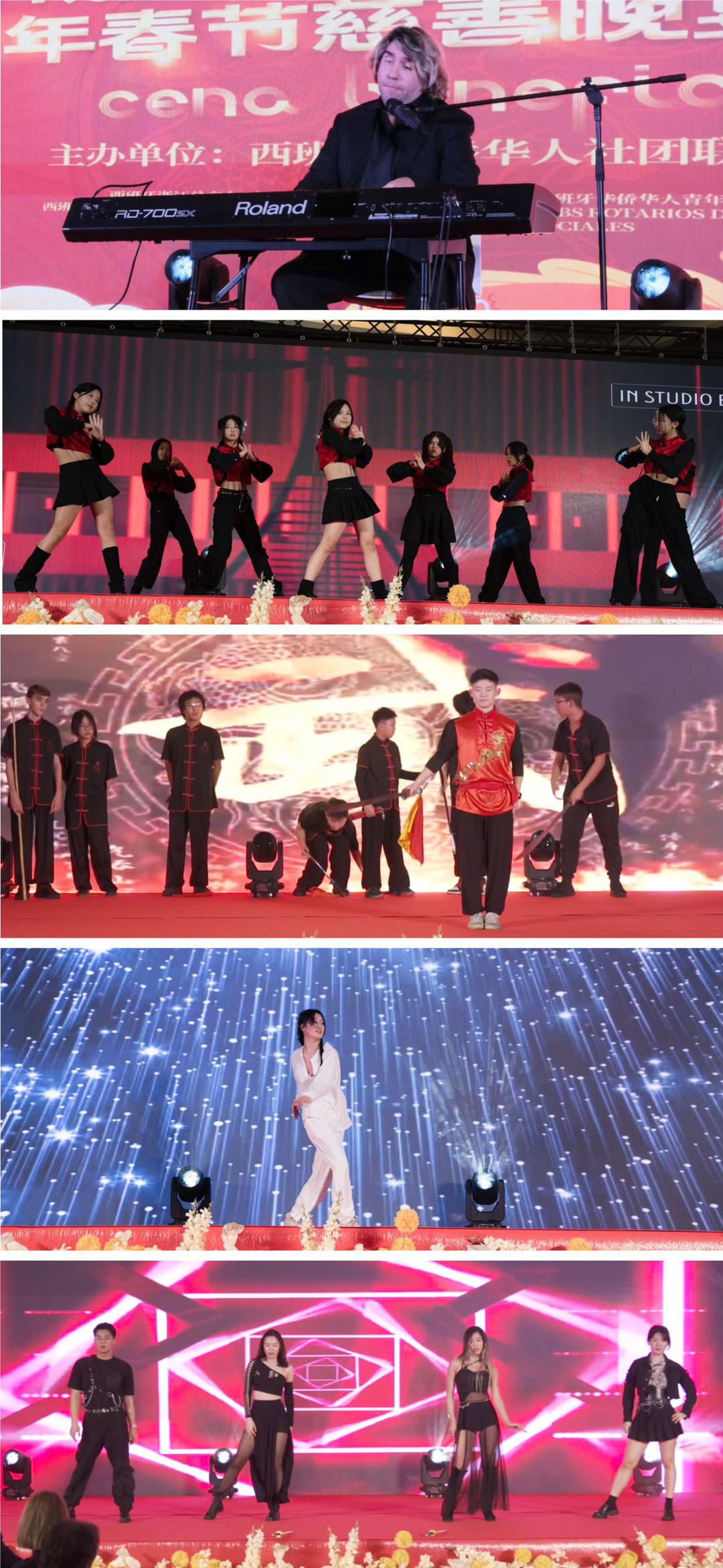 晚宴开启前的嘉宾致词环节,社团联谊总会慈善执行主席陈菲菲女士首先登台作慈善报告。12年前的龙年,我们举办了受届加泰罗尼亚华人华侨春节慈善晚宴。当时正值全球经济危机,我们通过做实事,做善事,传递中华民族“乐善好施”的“扶危济困”慈善精神,获得社会共识共鸣,受到社会爱戴与支持。12年的点点滴滴历历在目,感谢历届驻巴塞罗那总领馆、西班牙中央政府、加泰罗尼亚大区政府,及社团与企业等赞助单位,以及兄弟侨团历年来对新春慈善晚宴的大力支持。希望12年后,我们会感谢今天的付出和努力,犹如今天的我们,感谢12年前的我们曾付出的行动。