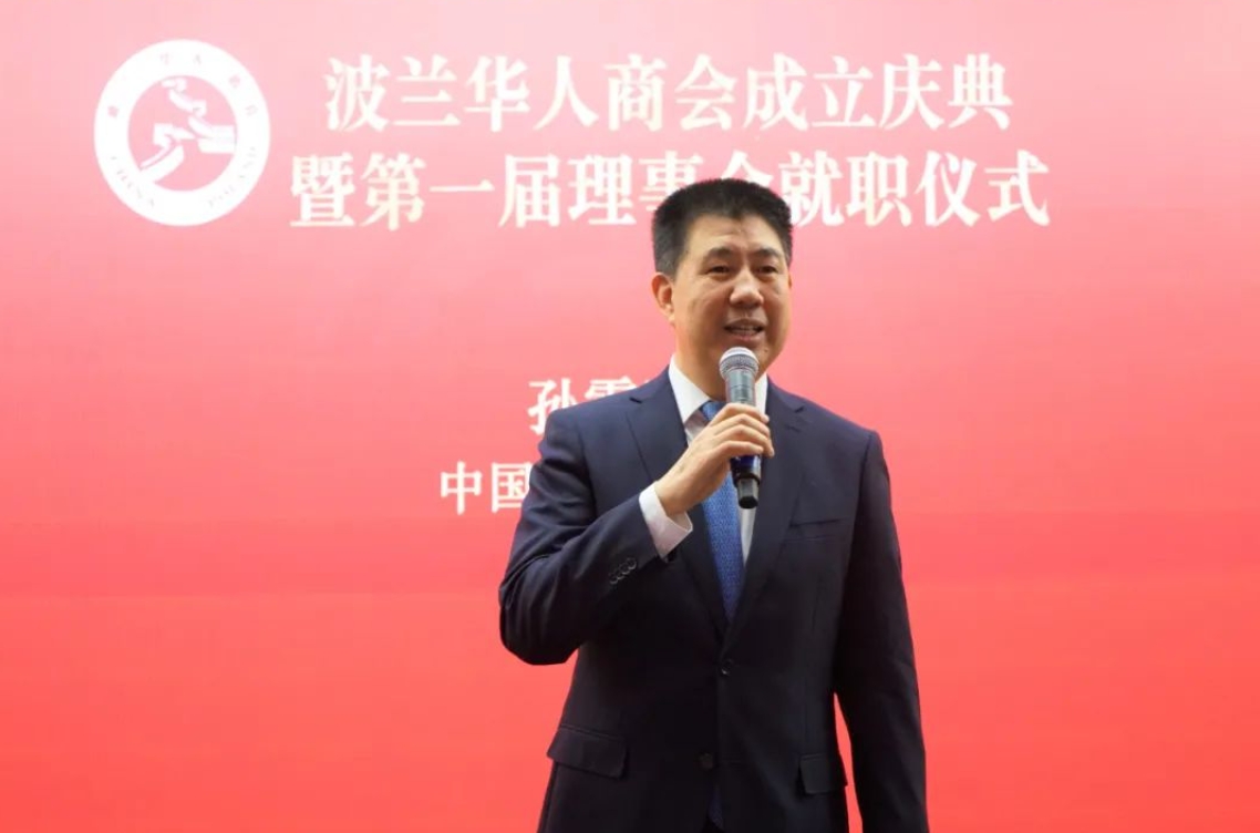 孙大使在致辞中祝贺商会成立并表示,广大旅波侨胞坚定支持中华民族复兴伟业、坚定拥护祖国统一大业,为中波友好事业作出重要贡献。商会成立既是起点,更是责任,希望大家团结一心,奋发昂扬,积极投身中国式现代化建设,推动中波共建“一带一路”,构建人类命运共同体,增进中波友谊和民心相通,做好中国故事的讲述者、中波关系的建设者、侨团发展的推动者。