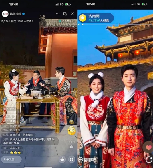 济南广电千万粉丝网红主播YOYO/颢鑫再度化身李清照、辛弃疾,以济南“二安”带领全球华人华侨走进章丘明水古城,赏美景享文化焕春天。