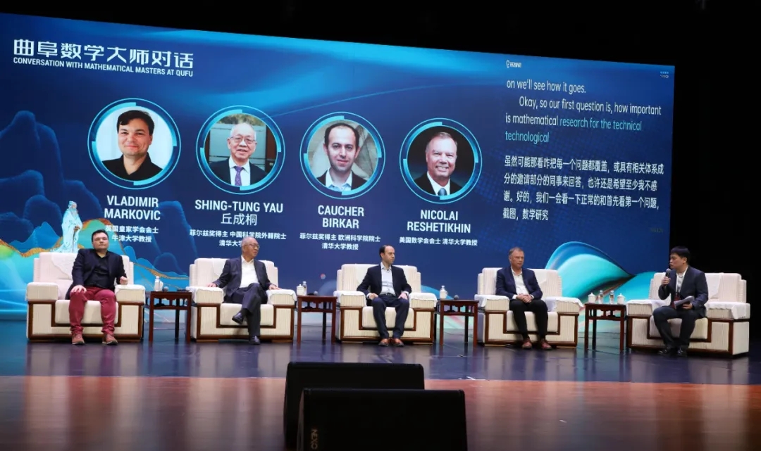 30日下午,“曲阜数学大师对话”在曲阜师范大学音乐厅举行,3位菲尔兹奖得主丘成桐、考切尔·比尔卡尔(Caucher Birkar)、弗拉基米尔·马克维奇(Vladimir Markovic)和美国数学会会士、清华大学丘成桐数学科学中心教授尼古拉·莱舍提金(Nicolai Reshetikhin)以“数学与人类文明、应用的关系;如何让学生学好数学”这个主题进行了讨论,并与现场学生进行互动,清华大学丘成桐数学中心助理教授、2023首届国际基础科学大会前沿科学奖获奖者张其明进行了主旨演讲,丘成桐现场为求真书院第二届普特南数学竞赛模拟赛获奖同学颁发了获奖证书。