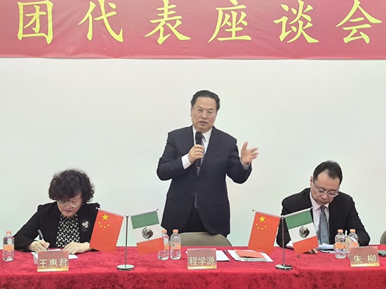 在与墨西哥侨团代表座谈中,程学源表示,以习近平同志为核心的党中央高度重视侨务工作和侨联事业发展,高度重视团结服务归侨侨眷和海外侨胞工作。中国共产党二十大报告强调,动员全体中华儿女围绕实现中华民族伟大复兴中国梦一起来想、一起来干。去年8月,第十一次全国归侨侨眷代表大会胜利召开,习近平主席等党和国家领导人到会祝贺,李希同志代表党中央致词,高度评价广大归侨侨眷和海外侨胞作出的积极贡献,对做好新时代侨联工作提出了明确要求。侨联组织是祖(籍)国联系海内外侨胞的桥梁和纽带,我们要深入贯彻十一代会精神,凝聚侨心、汇聚侨力、发挥侨智,画好侨界团结最大同心圆,为实现中华民族伟大复兴中国梦贡献侨界力量。