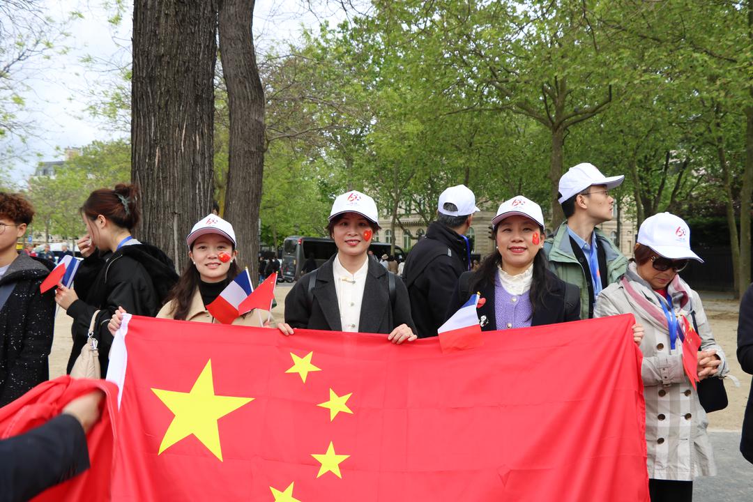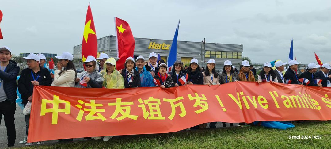 活动现场气氛热烈,大家挥舞着中法两国国旗,高举横幅,表达对两国友谊的祝福与期待。