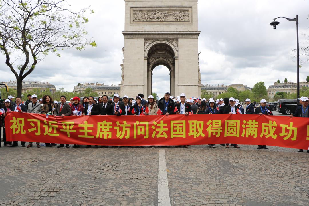 访问当天,在巴黎荣军院、香榭丽舍大街、爱丽舍宫,到处都高高挂着欢迎习近平主席到来的中国国旗,随风飘扬……
