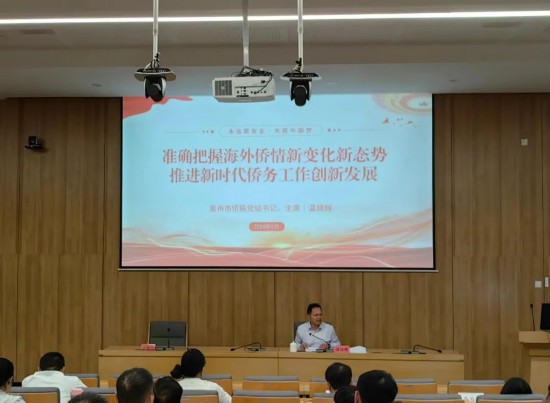 近日,泉州市侨联党组书记、主席温锦辉应邀到泉州市委党校,为学员作题为《准确把握海外侨情新变化新态势 推进新时代侨务工作创新发展》专题授课。这是近年来泉州市委党校迎来的“第一堂”侨务知识课。侨务知识进党校,是泉州市侨联贯彻落实习近平总书记关于侨务工作的重要论述和党中央新时代侨务工作方针,进一步加强和改进新时期侨联工作,推动侨务工作创新发展的一项具体举措。