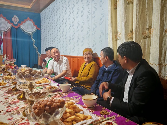 6月3日下午,吉尔吉斯斯坦华人华侨联合会会长江潮新、联络部部长别克扎提·加海一行在伊犁州统战部副部长、州侨联副主席、州社会主义学院党组书记石磊的陪同下,到伊犁州特克斯县阔科铁热克乡看望慰问侨眷、了解侨情。