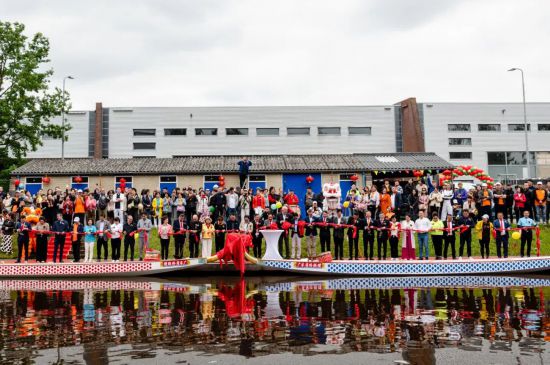 龙舟漂洋过海抵达荷兰后,由于没有找到合适的停泊基地,只能暂时存放在仓库。在荷兰华人的努力下,多地探访,多方洽谈,终于确定了一个训练和停泊场地。6月3日,荷兰华人龙舟训练基地启动仪式举行。