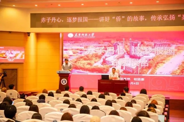 为深入贯彻落实习近平总书记视察天津重要讲话精神,庆祝新中国成立75周年和纪念陈嘉庚先生诞辰150周年,近日,天津市侨联主席、党组书记李占勇受邀前往天津科技大学,作《赤子丹心、逐梦报国——讲好“侨”的故事,传承弘扬“嘉庚精神”》主题报告,加强广大学生对“侨”的认识,引领广大青年将爱国之情、报国之志融入强国建设、民族复兴的伟大事业中。学校党委书记白海力,党委副书记安玉健、贾启君在会前与李占勇主席进行了亲切交流。校党委统战部、校团委负责同志参加,市、校、院三级“青马工程”培训班学员,校研究生支教团志愿者、2024年西部计划志愿者和团学骨干200余人共同聆听了讲座。报告会由校党委副书记贾启君主持。