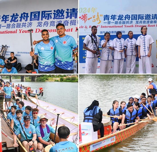 今年是“一带一路”黄金十年开局之年,又逢农历龙年,举办首届“一带一路”青年龙舟国际邀请赛意义非凡。本次龙舟赛吸引了来自阿根廷、加拿大、泰国、马来西亚等30多个国家和地区的近800名队员参赛,除了通常的竞技龙舟赛,还增加了深具当地民俗特色的惠安女花样表演赛。现场鼓声震天,棹桨飞舞,龙舟在黄塘溪上劈波斩浪、奋勇争先,气氛热烈。除了欣赏充满激情的龙舟盛况,主办方还专门安排了马来西亚二十四节令鼓以及印尼舞龙舞狮表演,“侨家乐”美食风情节也同步启动。视觉、味蕾交织碰撞,多元文化“各美其美,美美与共”,展现一幅文明交流互鉴、“一带一路”合融共济的生动画卷。