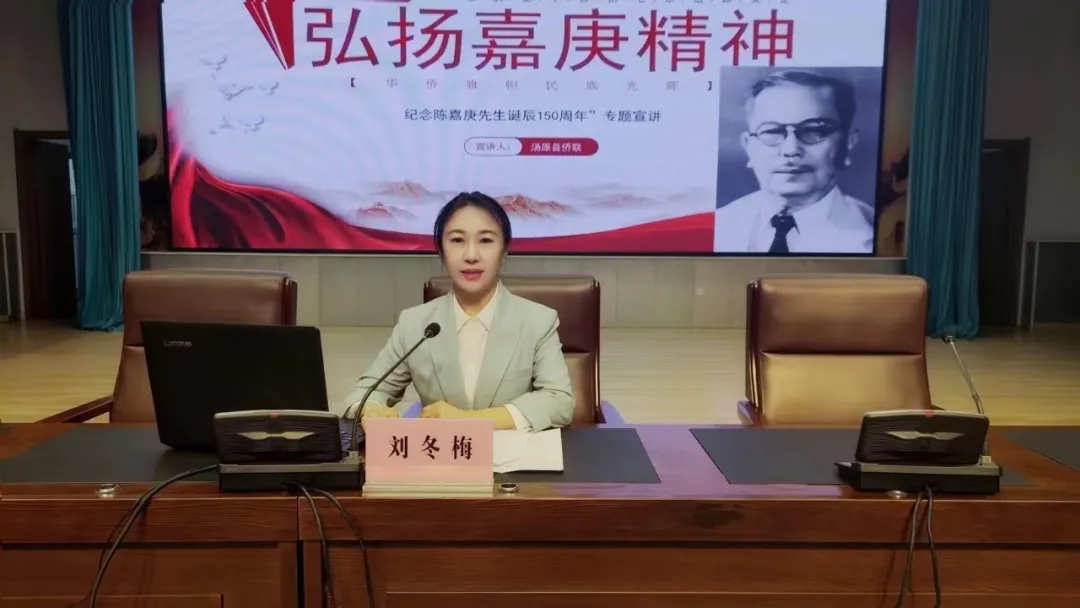 活动中,汤原县侨联主席刘冬梅对新时代传承弘扬“嘉庚精神”进行了宣讲,让这种精神成为凝侨心、聚侨力的生动体现和深刻诠释。希望广大归侨侨眷继承嘉庚遗志,深怀爱国之情,坚守报国之志,同祖国人民一道不懈奋斗,共圆民族复兴之梦。