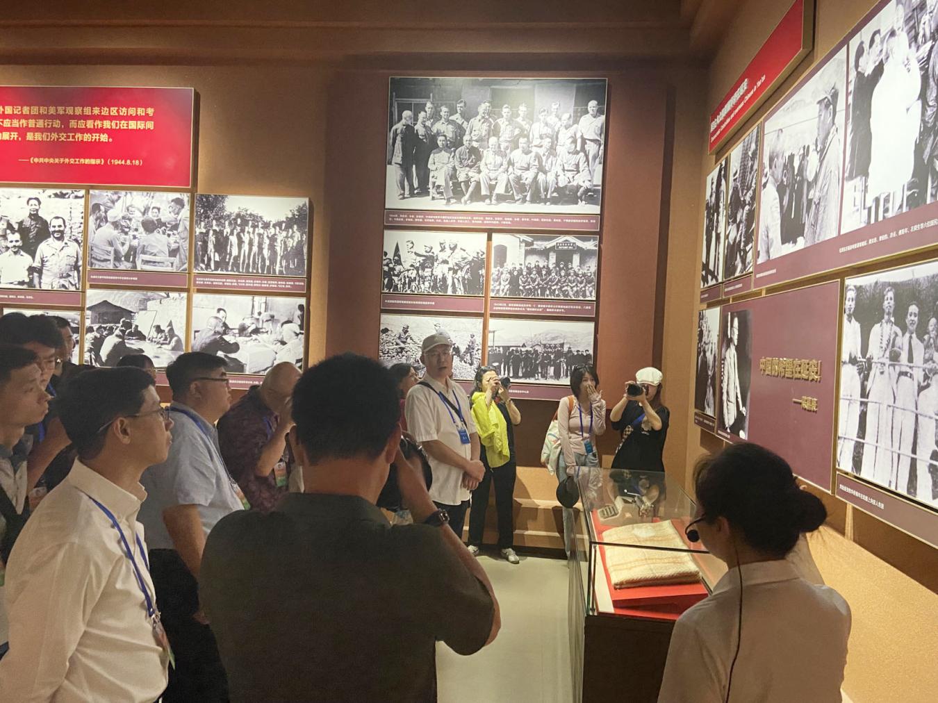 采访团一行首先走进延安革命纪念馆,一张张照片、一件件实物,无声讲述着中国共产党在这里战斗和生活的13个春秋,具象化伟大建党精神和延安精神。采访团一行还来到见证了中央红军在延安十三年光辉历程的王家坪革命旧址,走进中共中央书记处曾经的驻地枣园革命旧址和位于金延安文化产业园区的红色家风馆,感受这片红色热土上涌动的家国情怀与革命精神,为红色文化出海贡献媒体力量。