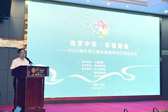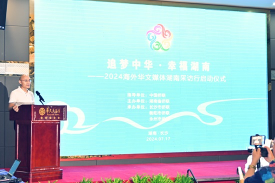 7月17日,“追梦中华·幸福湖南”2024海外华文媒体湖南采访行在长沙启动,湖南省侨联党组书记、副主席孙民生,中国侨联信息中心副主任张献锋出席并讲话,湖南省侨联党组成员、副主席彭迪主持。