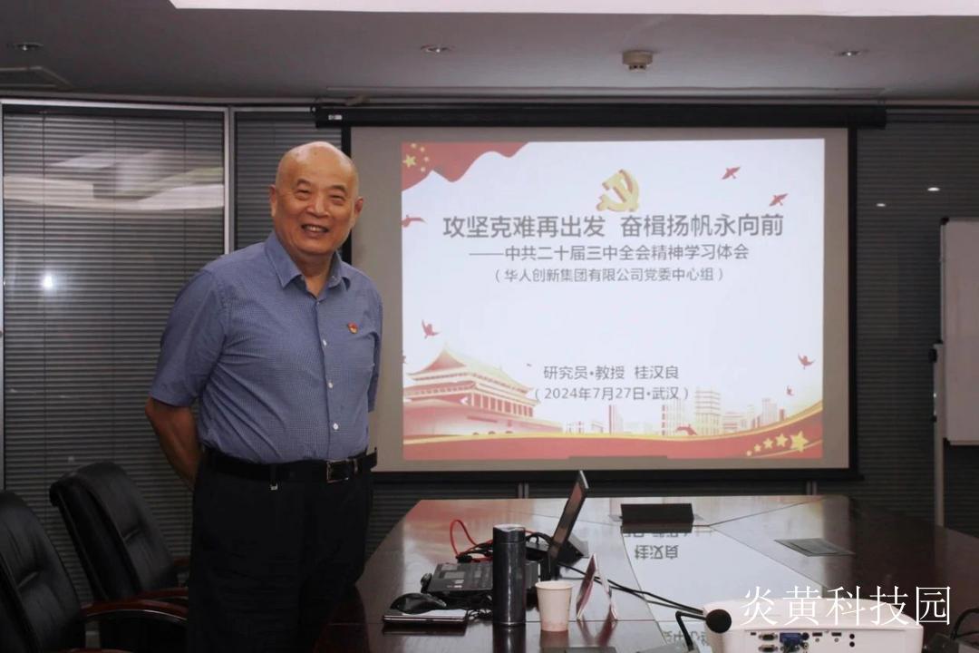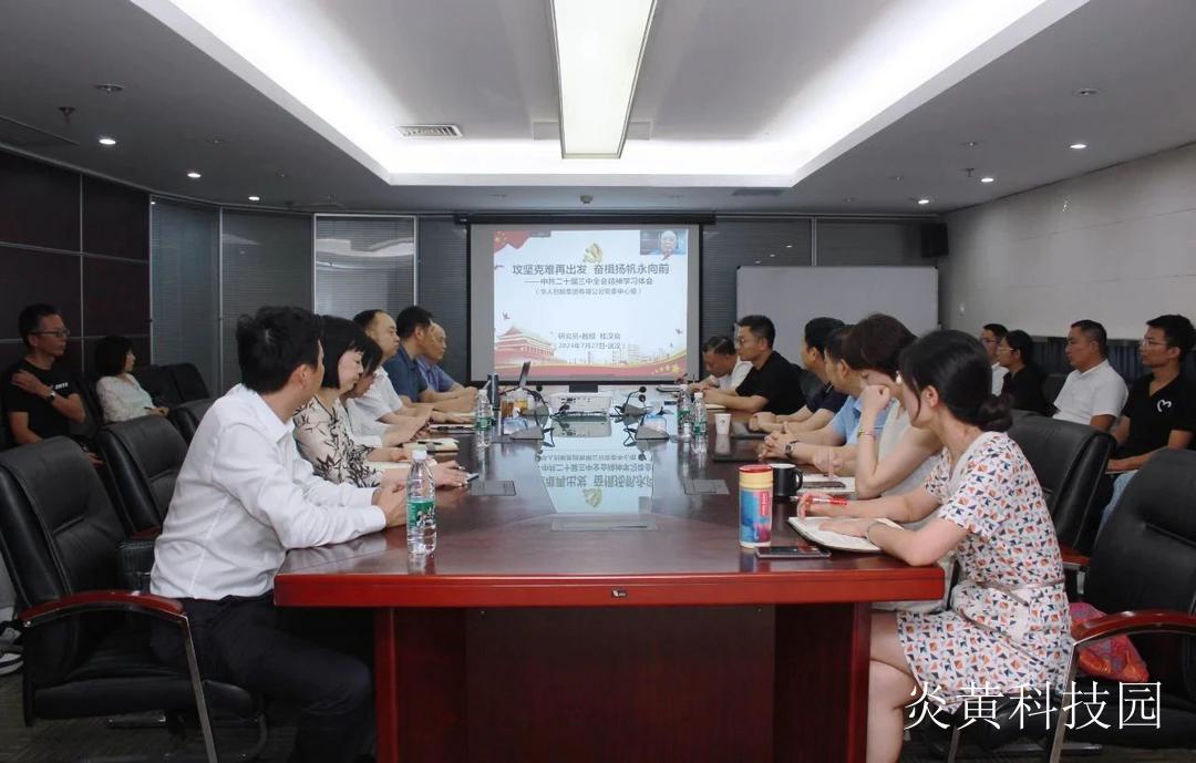 7月27日上午,炎黄科技园母公司华人集团党委理论学习中心组学习会在湖北武汉集团总部会议室召开,专题学习党的二十届三中全会精神。炎黄科技园联合党支部党员、入党积极分子及全体员工通过网络参加学习。