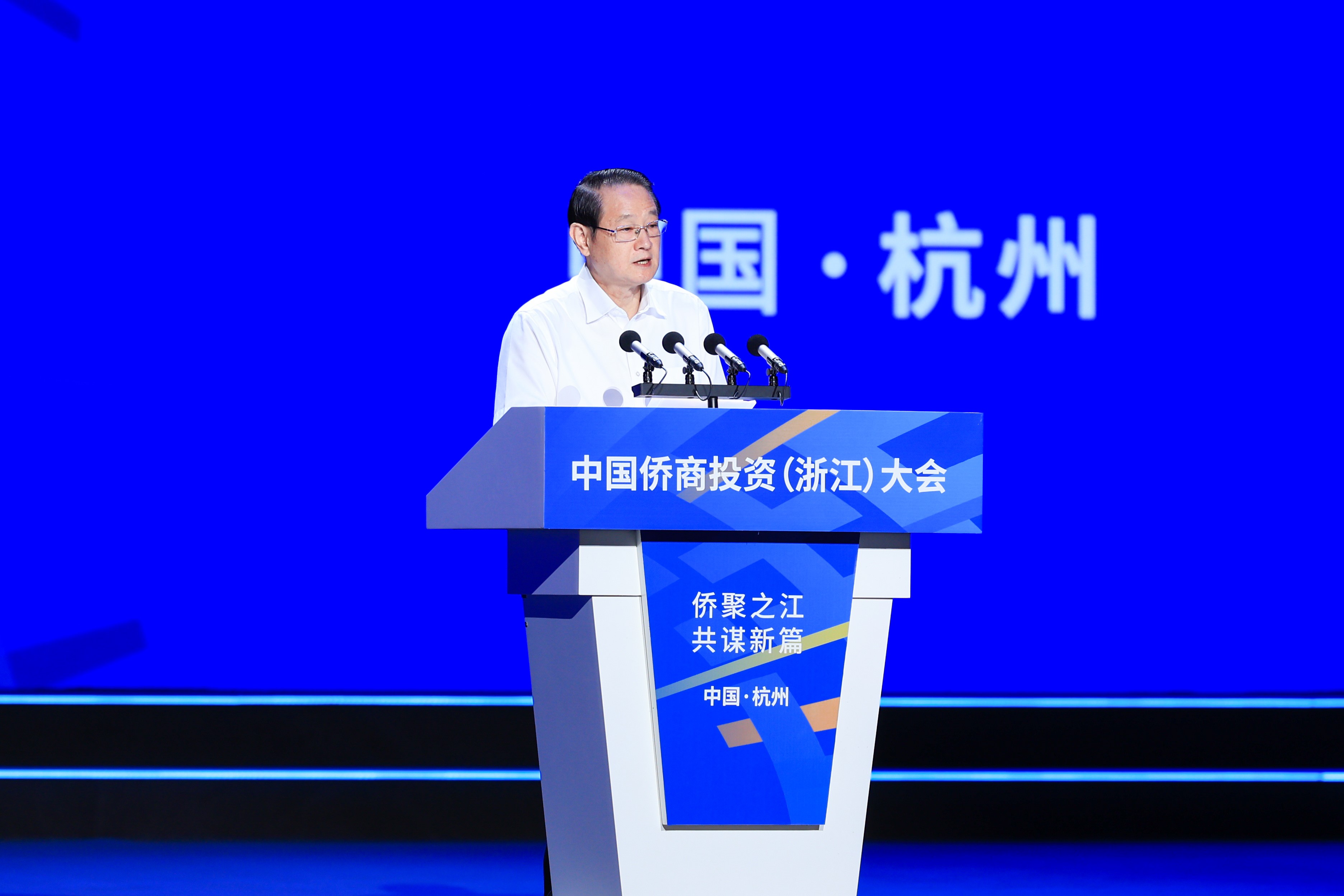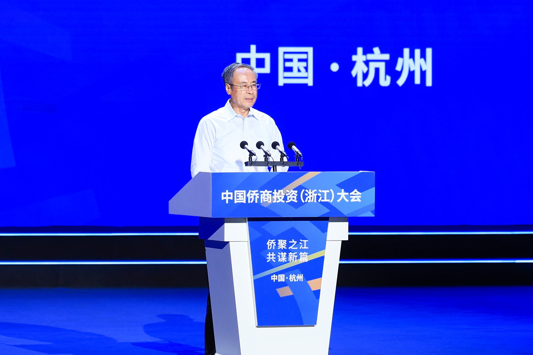 7月31日,由中国侨联、浙江省人民政府共同主办的中国侨商投资(浙江)大会在杭州举行。大会以“侨聚之江 共谋新篇”为主题。中国侨联党组书记、主席万立骏,浙江省委书记、省人大常委会主任易炼红出席大会并致辞,浙江省委副书记、省长王浩主持大会。中国侨联副主席程红,浙江省领导邱启文、王文序、暨军民、卢山、叶正波,海南省副省长顾刚,浙江省市有关部门负责人,海内外知名侨商、侨界高层次科技人才、高科技企业负责人等800余人出席大会。