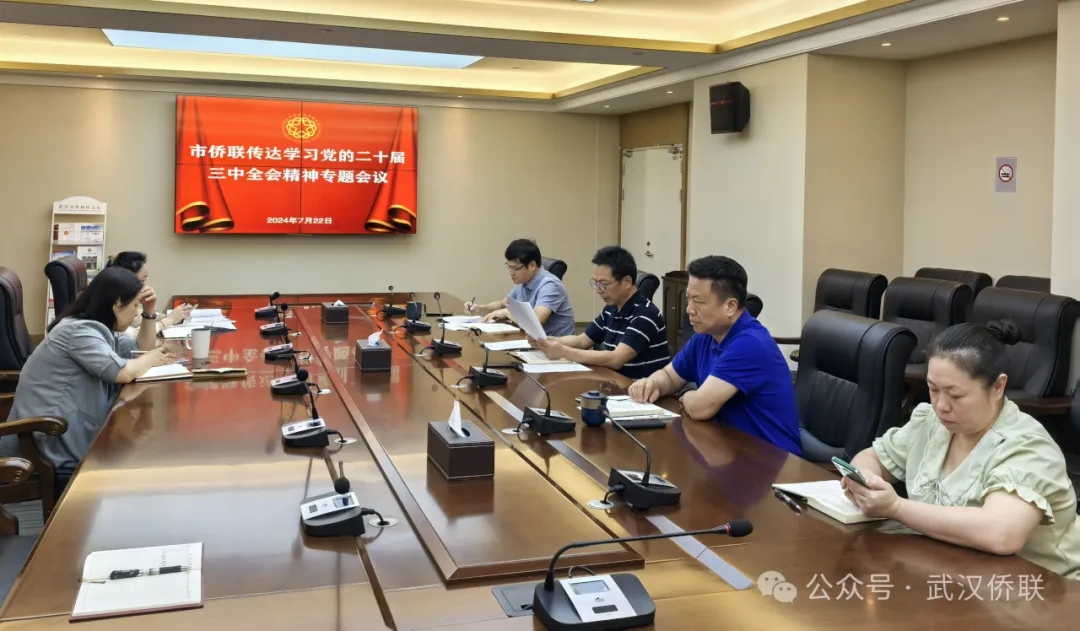 7月22日上午,湖北省武汉市侨联召开全体干部会议,专题传达学习党的二十届三中全会精神,研究部署学习宣传贯彻工作。市侨联党组书记、主席徐祥忠主持会议。