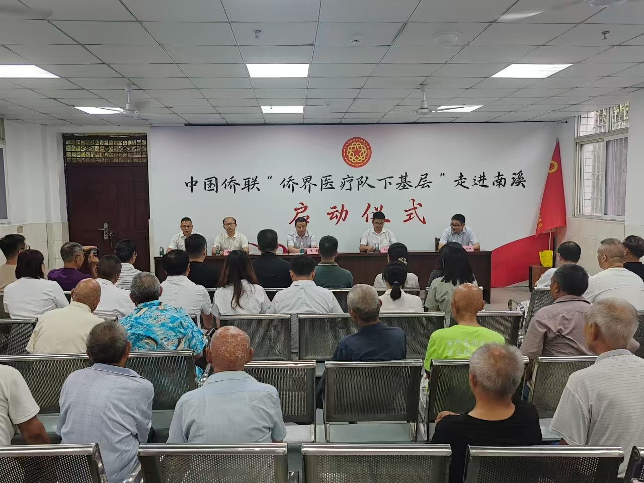 近日,由中国侨联主办,四川省侨联、宜宾市侨联、南溪区侨联承办的“侨界医疗队下基层”活动启动仪式在南溪街道养老服务中心举行。宜宾市委统战部副部长、侨务工作分管领导王睿,南溪区委常委、区统战部长、区政协党组副书记王财波、宜宾市侨联副主席陈欣出席启动仪式。市侨联副主席陈红旭向侨界医疗队授旗。宜宾市侨联、宜宾市侨办、南溪区委统战部、南溪区侨联相关人员,南溪区各镇(街道)统战委员、侨界医疗队队员、归侨侨眷代表、社区群众代表100余人参加了启动仪式。南溪区侨联副主席卢开君主持仪式。