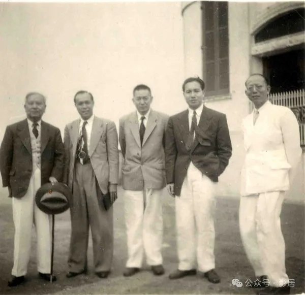 1949年5月5日由新加坡启程返回祖国,图为抵达香港时与庄明理、黄长水、陈共存、张楚鸣合影