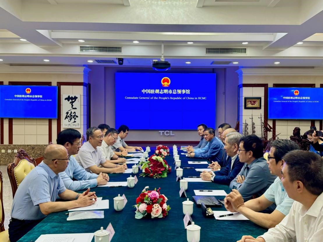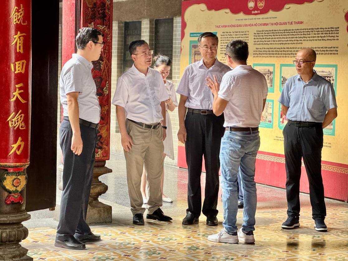 在胡志明市,万立骏集体看望当地华侨代表,走访豪士坊、穗城会馆、义安会馆,与大家共叙乡情、共话发展。他表示,旅越华侨华人艰苦奋斗、落地生根,在实现自身事业发展的同时积极融入和回馈当地社会,为深化中越各领域交流合作作出积极贡献,为大家取得的成就感到高兴。