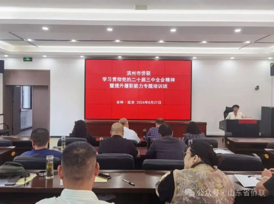 8月26日-30日,滨州市侨联学习贯彻党的二十届三中全会精神暨提升履职能力专题培训班在延吉市举办。市欧美同学会会长、市人大常委会副主任王方正出席开班仪式并作动员讲话,市侨联主席、市财政绩效评价中心主任宋宇飞主持开班仪式,市委统战部副部长许立华出席。