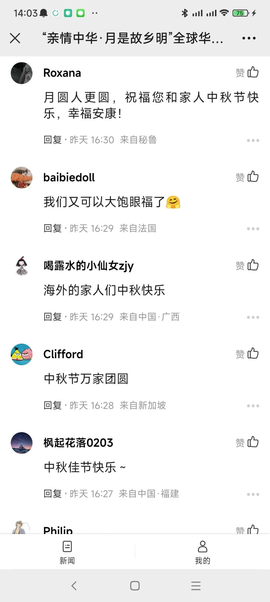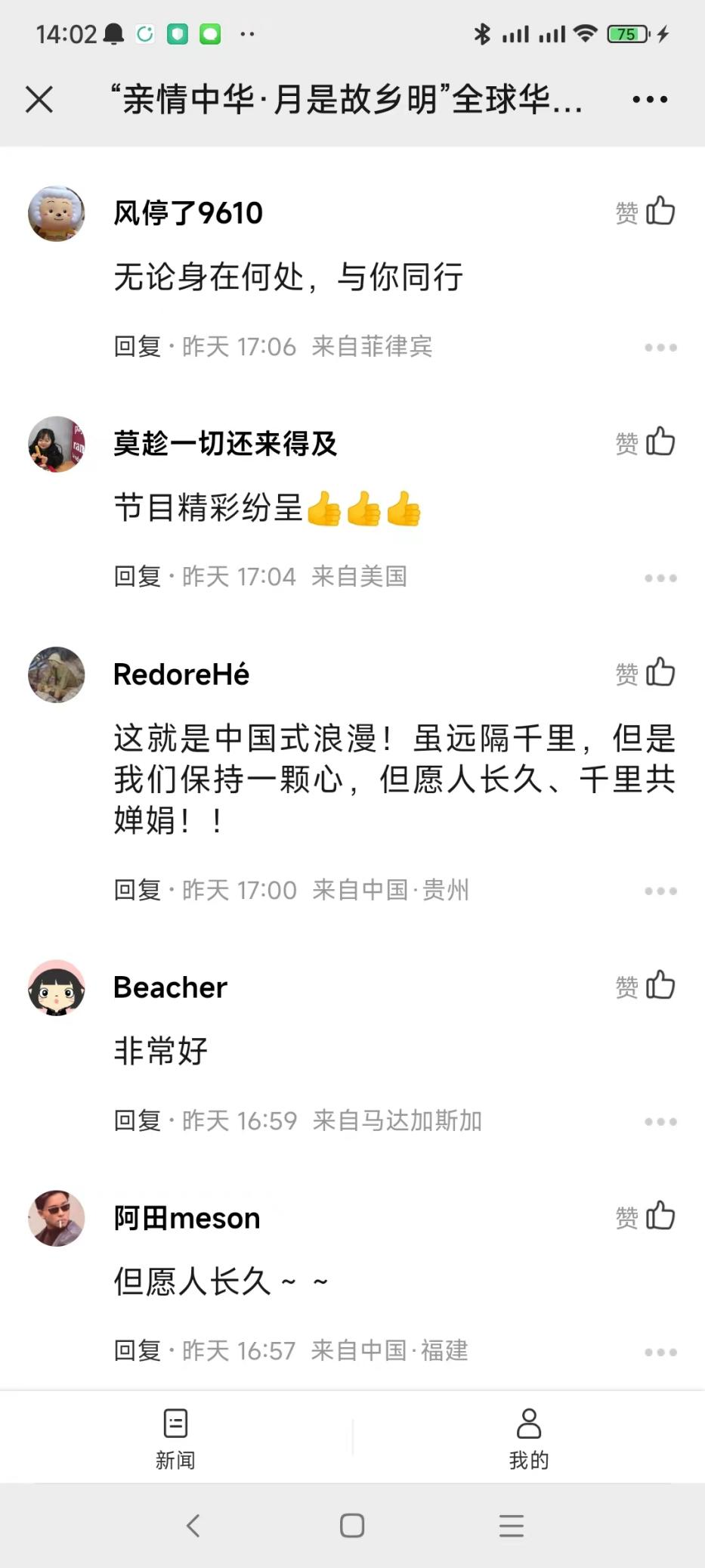 旅居各地侨胞对联欢会反响热烈,连连称赞,纷纷在直播间发表热情洋溢的评论。