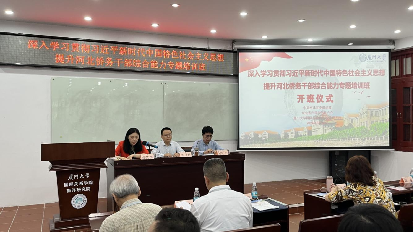 为深入学习贯彻党的二十届三中全会精神,落实河北省委十届六次全会部署,提升侨联委员、干部履职能力,推动侨联工作高质量发展,9月23日至27日,由河北省委组织部、基本省侨联联合开展的“深入学习贯彻习近平新时代中国特色社会主义思想 提升河北侨务干部综合能力专题培训班”在厦门大学圆满举办。河北省侨联党组成员、副主席张月辉,厦门大学国际关系学院党委书记邱旺土出席开班仪式并讲话。