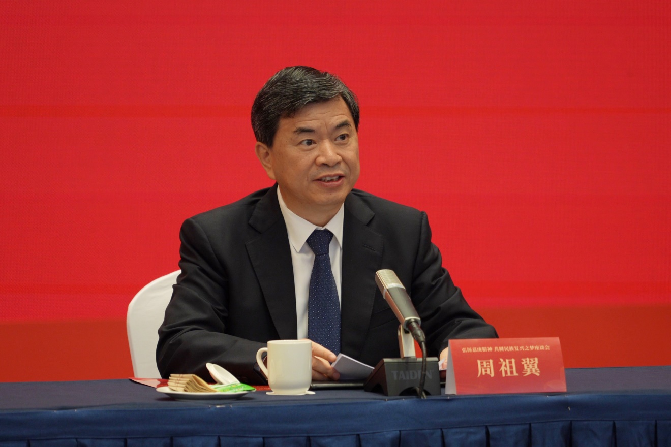 周祖翼指出,新时代新征程,要深入学习贯彻习近平总书记在福建考察时的重要讲话精神,学习好、弘扬好“嘉庚精神”,把嘉庚先生开创的事业进一步发扬光大。一是要学习弘扬陈嘉庚先生以国家为重、以民族为重的品格。持续加强党史、新中国史、改革开放史、社会主义发展史、中华民族发展史宣传教育,培育和践行社会主义核心价值观,让爱国主义精神根植人民群众心中。继承陈嘉庚先生期盼祖国统一的宏愿,发挥福建对台独特优势,加快建设两岸融合发展示范区,着力打造两岸社会融合、经贸融合、情感融合示范样板,为推进祖国统一大业作出新贡献。二是要学习弘扬陈嘉庚先生艰苦创业、自强不息的精神。完善有利于推动高质量发展的体制机制,因地制宜发展新质生产力,加快构建体现福建特色现代化产业体系,争当高质量发展先行者。福建是民营经济最早的发轫地之一。深入实施新时代民营经济强省战略,引导民营企业家持续向嘉庚先生学习,拼搏奋斗、艰苦创业,坚守实业、做精主业,以诚立身、以毅处事,成为推动高质量发展的生力军。三是要学习弘扬陈嘉庚先生关心祖国建设、倾心教育事业的诚心。完善引侨资、汇侨智、聚侨力工作机制,依托宗亲乡亲、祖地文化等纽带广泛凝聚侨心,引导海外闽籍侨胞发挥更大作用,助力构建国内国际双循环的重要节点、重要通道。要继承陈嘉庚先生“教育为立国之本,兴学乃国民天职”的理念,把教育摆在优先发展的战略地位,突出教育、科技、人才一体推进,深化教育改革、科教融合和产教融合创新发展,加快建设教育强省。